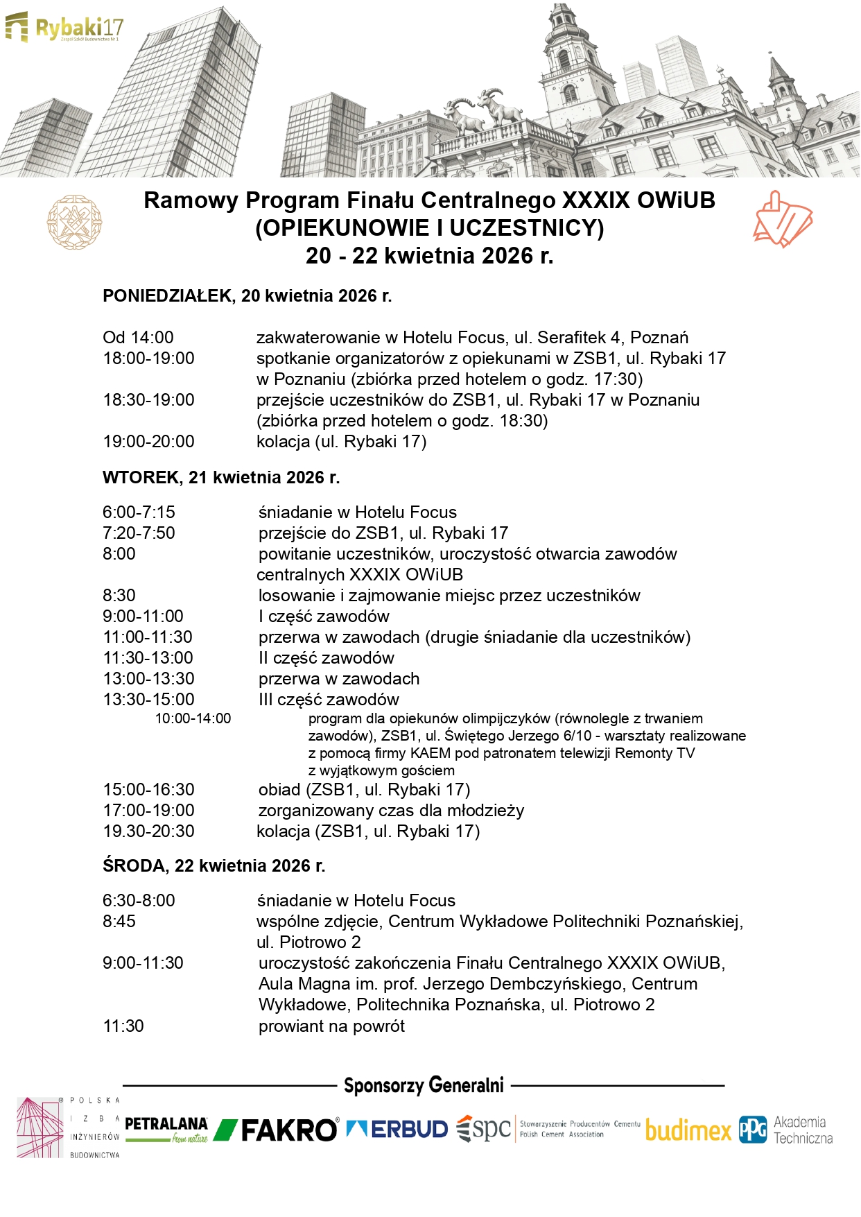gospodarz Finału Centralnego XXXIX Olimpiady Wiedzy i Umiejętności Budowlanych